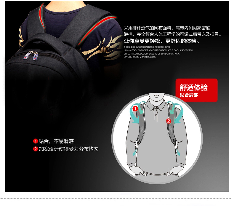 • 内部结构:拉链暗袋 手机袋 证件袋 夹层拉链袋 电脑插袋 相机插袋