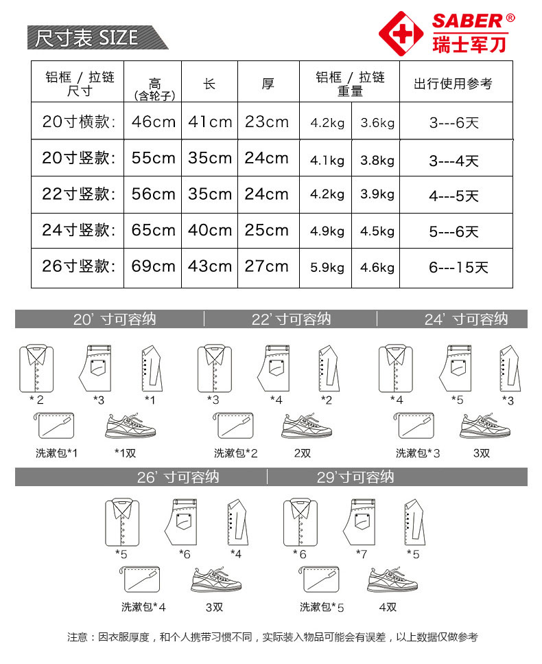 • 商品名称:SA8017瑞士军刀22寸旅行箱
