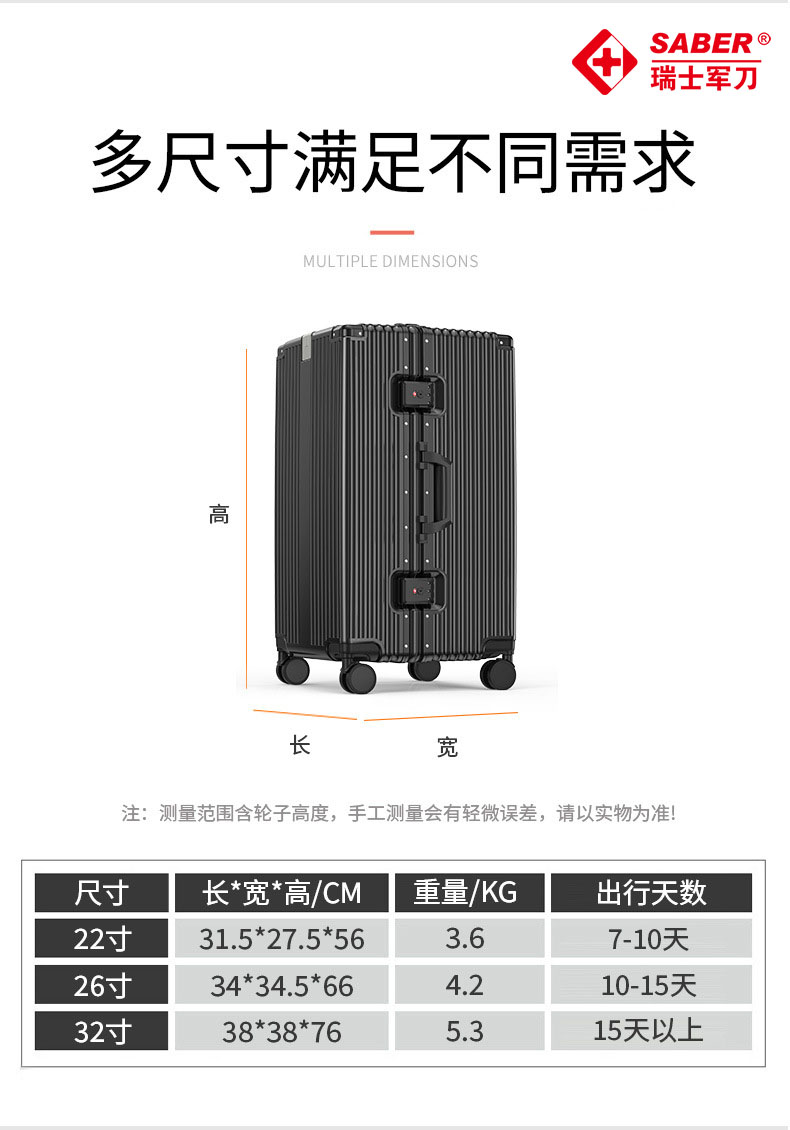 • 商品名称:SA8019瑞士军刀26寸旅行箱