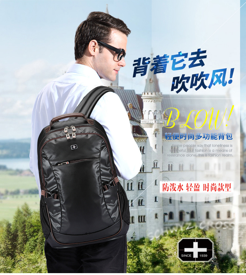 • 商品名称:施维茨十字双肩包男士背包女韩版电脑包休闲旅行包高中学生书包潮
