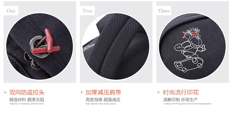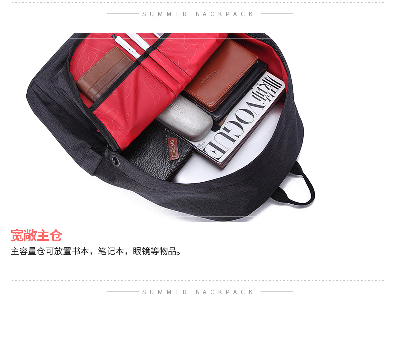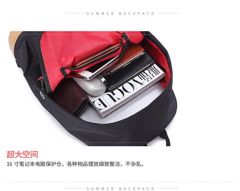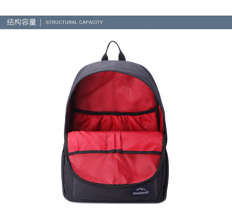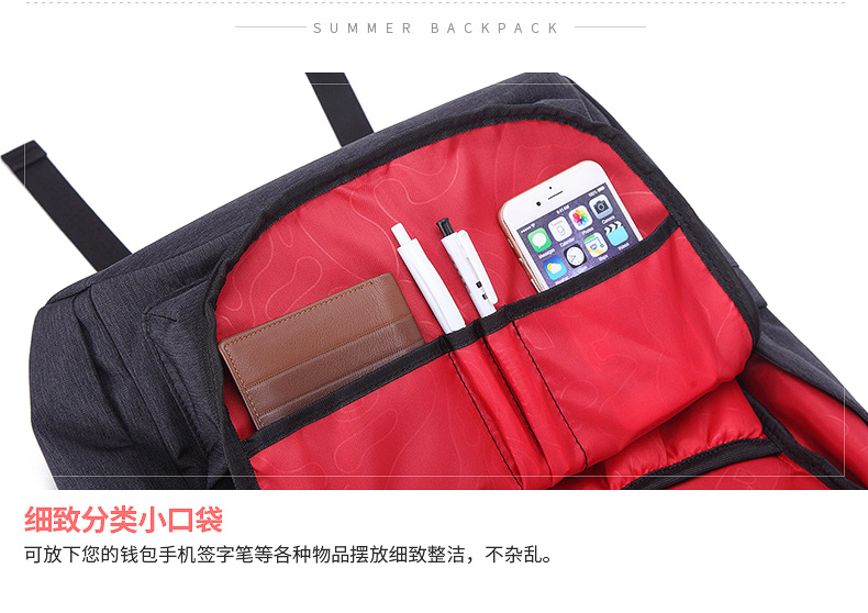 • 内部结构:网袋 拉链暗袋 手机袋 证件袋 夹层拉链袋 电脑插袋