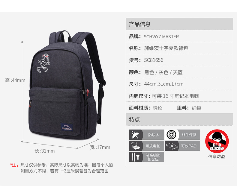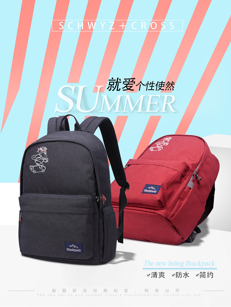 • 商品名称:施维茨十字双肩包男士背包女韩版休闲旅行包高中学生书包电脑包潮
