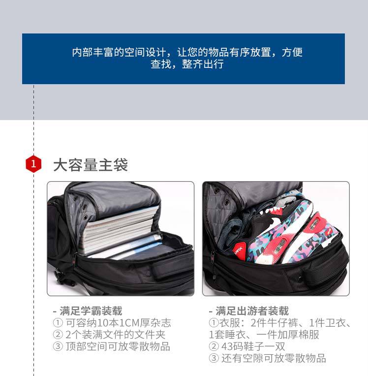 • 商品名称:瑞士军刀包电脑双肩背包17寸男士大容量户外休闲旅行包 SA-9503